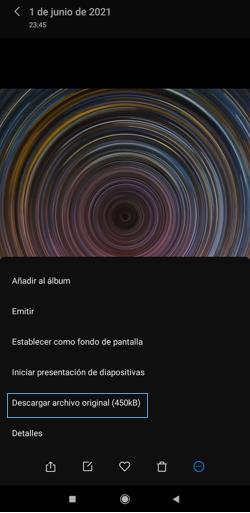 Al hacer clic sobre los tres puntos de ajustes encontramos dentro de las opciones: “Descargar archivo original (450k)”. Esto significa que redujo el tamaño de tu imagen sin comprometer su calidad. Además, te da la oportunidad de deshacer los ajustes cuando lo desees.
