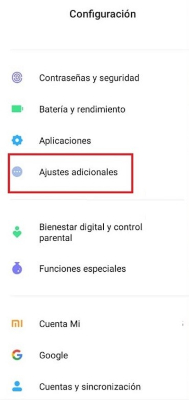 - Lo primero será entrar en las “Configuraciones” de tu móvil y luego dirigirte a los “Ajustes adicionales”.