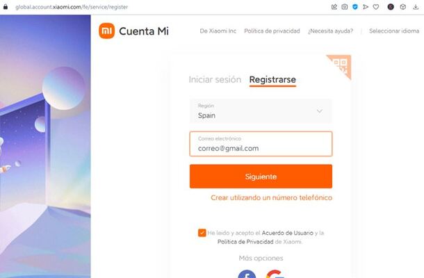 - Ingresa al siguiente enlace para crear una cuenta mi Xiaomi: account.xiaomi.com