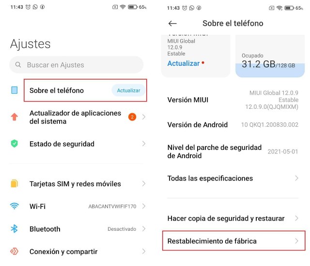 Es la más sencilla de hacer y la que menos riesgo entraña, ya que dicha opción para restaurar teléfono Xiaomi Redmi o POCO viene incluida. Dicho de otra manera, la compañía te dejará la opción de formatear un teléfono Xiaomi completamente a mano.