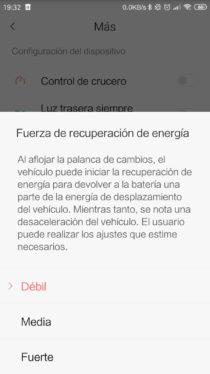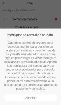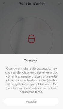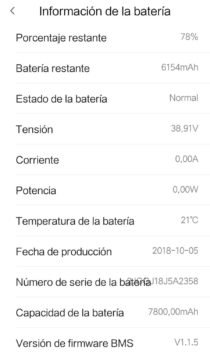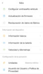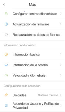 Dentro de los ajustes podemos encontrar diferentes apartados para tener toda la información del estado del scooter.