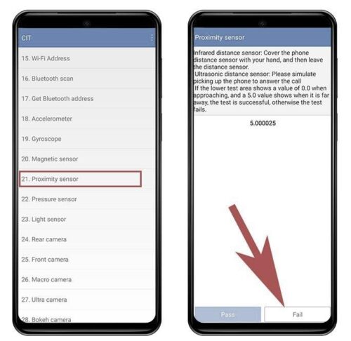 - Seguidamente pulsamos sobre el botón «Calibration» o «Fail» a fin de calibrar el sensor de proximidad de nuestro Xiaomi.