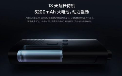 Otra gran actualización del nuevo Mijia Walkie Talkie 2 es su mayor capacidad de batería. Tiene una batería de 5,200 mAh. Lo que viene siendo más del doble que la batería de 2190mAh del Mijia Walkie Talkie 1s. Durará 13 días en espera y proporcionará hasta 15 horas de tiempo de conversación con una carga completa. Ya vamos viendo la justificación de precio, con esta pantalla y esta batería.